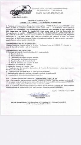 Transportadores de Angélica – COPERTRAN, inscrita no CNPJ(MF) sob nº